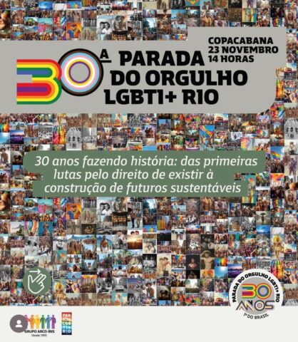 A cidade do Rio de Janeiro se prepara para receber, no dia 23 de novembro, a 30ª edição da Parada do Orgulho LGBTI+ Rio, uma das maiores manifestações pela diversidade na América Latina. A marcha acontece na Avenida Atlântica (com concentração no Posto 5), a partir das 11h, com o tema “30 anos fazendo história: das primeiras lutas pelo direito de existir à construção de futuros sustentáveis”.